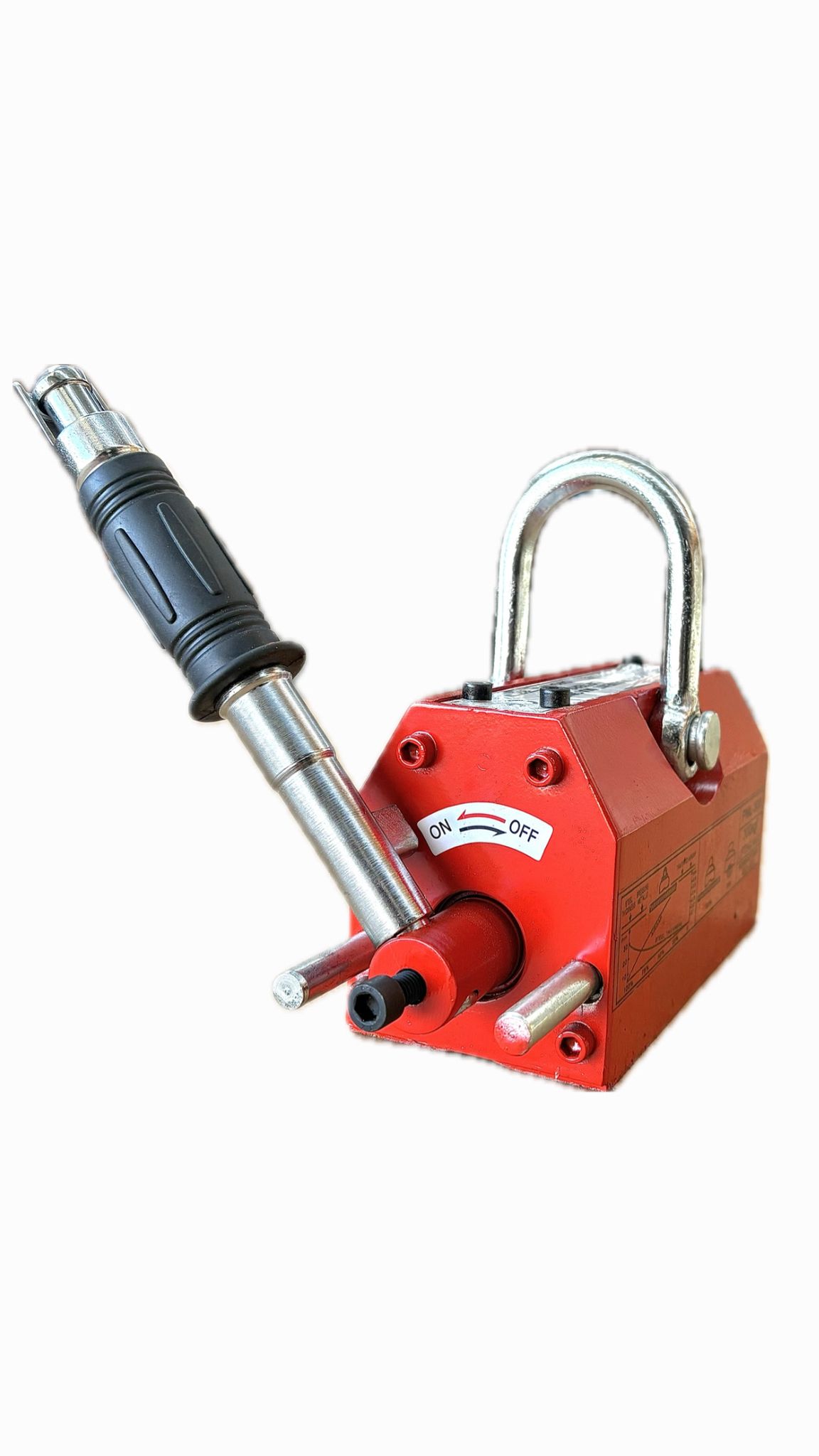 Disponibil în 4 variante de capacitate — 300, 600, 1000 și 2000 kg — cu un factor de siguranță de 3,5 : 1, ceea ce înseamnă că forța reală de rupere este de 3,5 ori mai mare decât sarcina maximă de lucru declarată. Comutatorul manual ON/OFF cu pârghie permite activarea și dezactivarea instantanee a câmpului magnetic, iar la dezactivare nu rămâne magnetism rezidual — piesa se eliberează complet.
